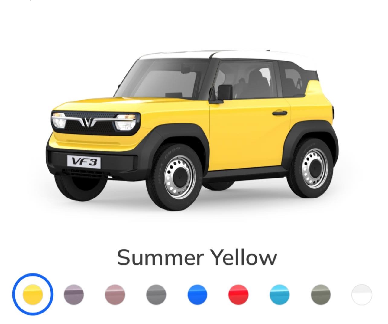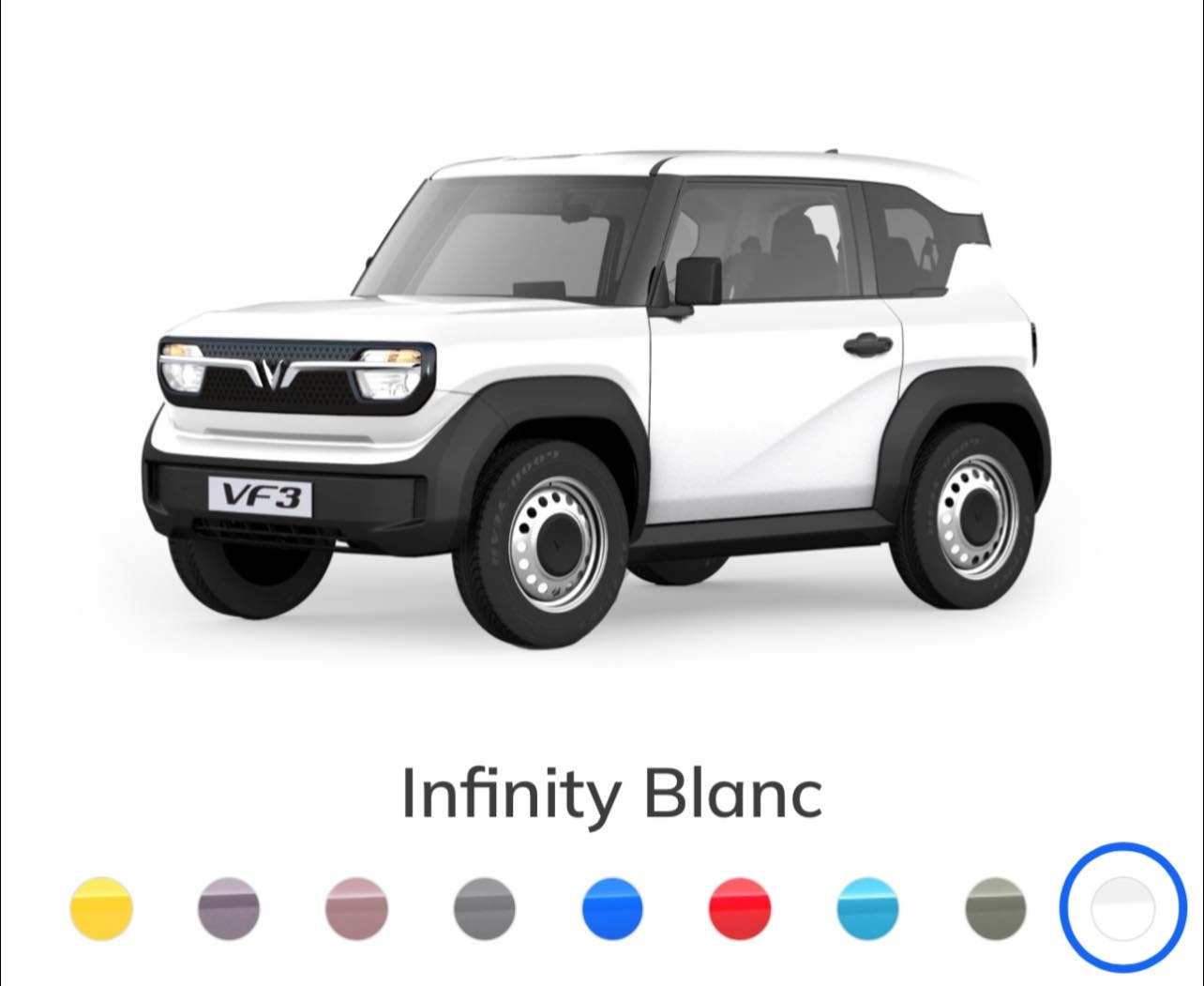 Bảng màu VinFast VF3 – 9 Sắc thái, 9 Cá tính. Nổi bật với bảng màu đa dạng, phù hợp nhiều phong cách, từ trang nhã đến cá tính.
